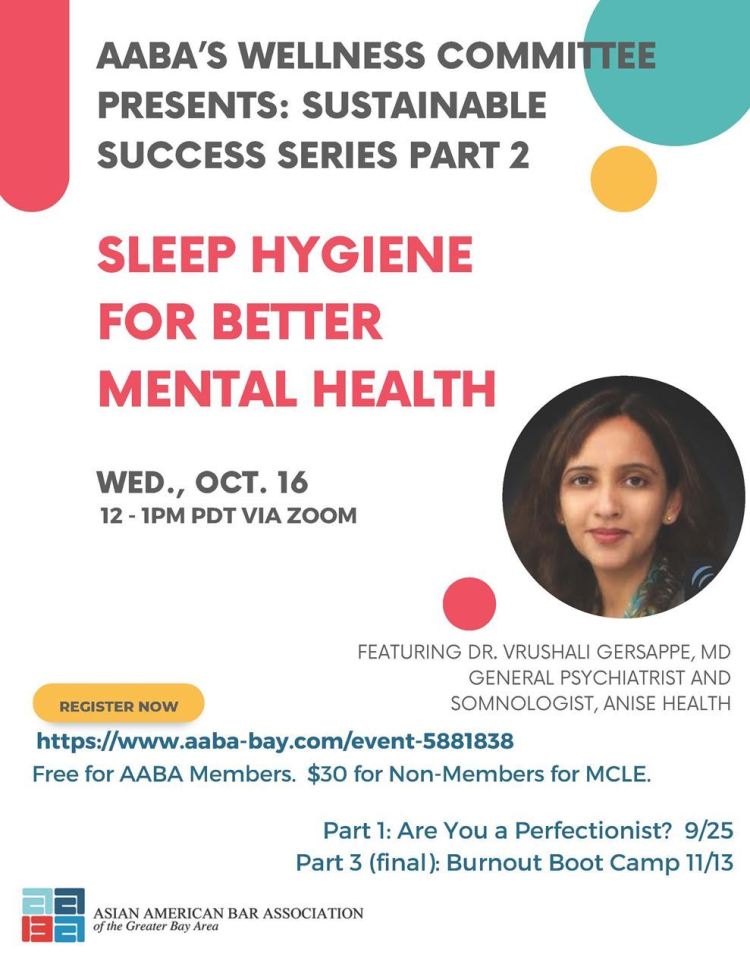 - Sleep Hygiene for Better Mental Health | October 16, 12 – 1 PM | Zoom | Register here.