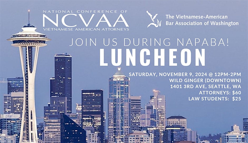 Come join the National Conference of Vietnamese American Attorneys (NCVAA) and the Vietnamese-American Bar Association of Washington (VABAW) during the NAPABA Conference to network with fellow members of NCVAA and VABAW while enjoying a delicious lunch at Wild Ginger (in Downtown Seattle). This in-person event is a great opportunity to connect with others in the legal community, whether to see familiar faces or make new connections.