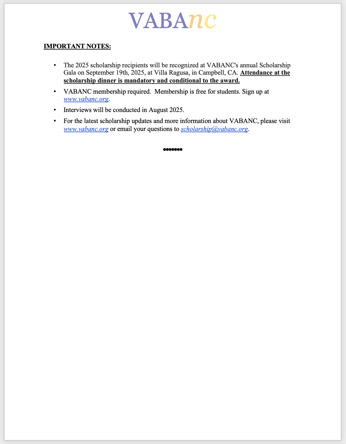 Please email scholarshipdinner@vabanc.org for questions about our sponsorship packet.